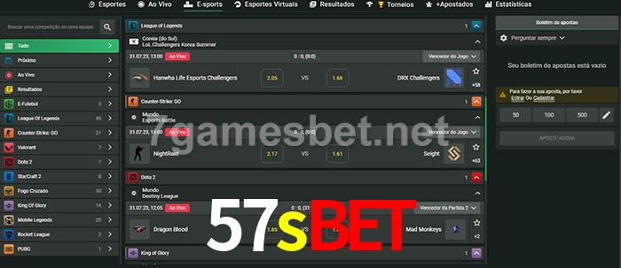 A aposta 57sbet oferece aos jogadores a experiência mais conveniente de apostas em eSports!